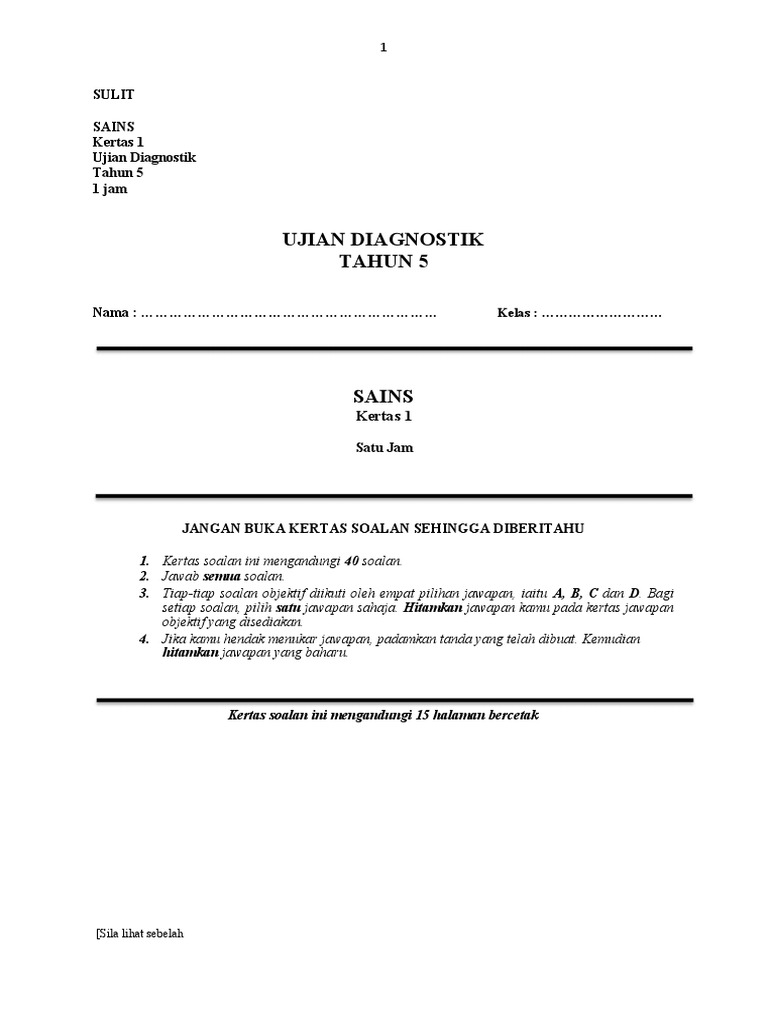 Ujian Diagnostik Tahun 5 Sains Kertas 1 Pdf